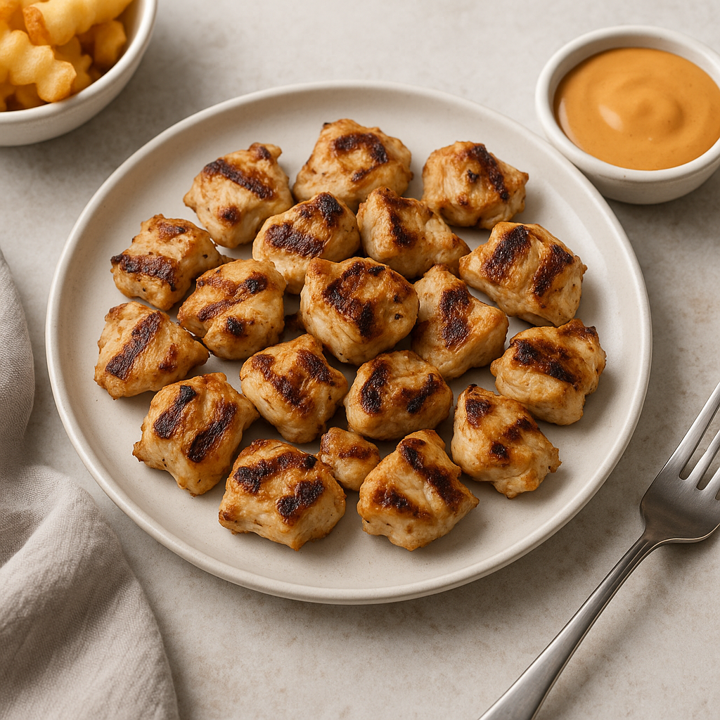 Compared to fried nuggets, grilled chicken nuggets are lower in calories and fat, making them a healthier choice. Chicken is a great source of lean protein, which supports muscle repair, immune function, and keeps you full longer. When paired with fresh veggies or a salad, this meal is both balanced and satisfying.