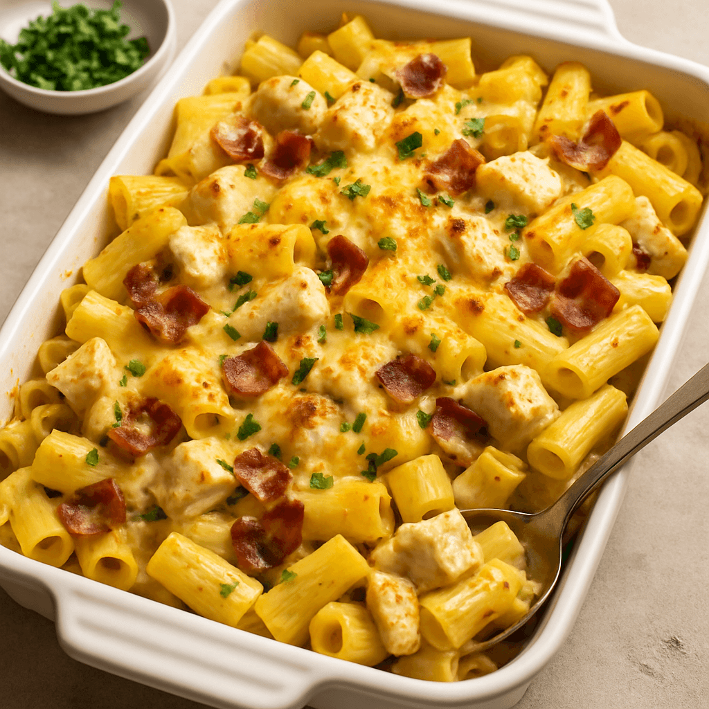 If you’re looking for a crowd-pleasing, easy-to-make dinner that combines creamy, cheesy, savory, and smoky flavors, this **chicken bacon ranch pasta bake** is exactly what you need. It’s the perfect dish for busy weeknights, potlucks, or meal prepping for the week ahead. Loaded with juicy chicken, crispy bacon, tender pasta, and a luscious ranch cheese sauce, every bite is a delicious comfort food experience.