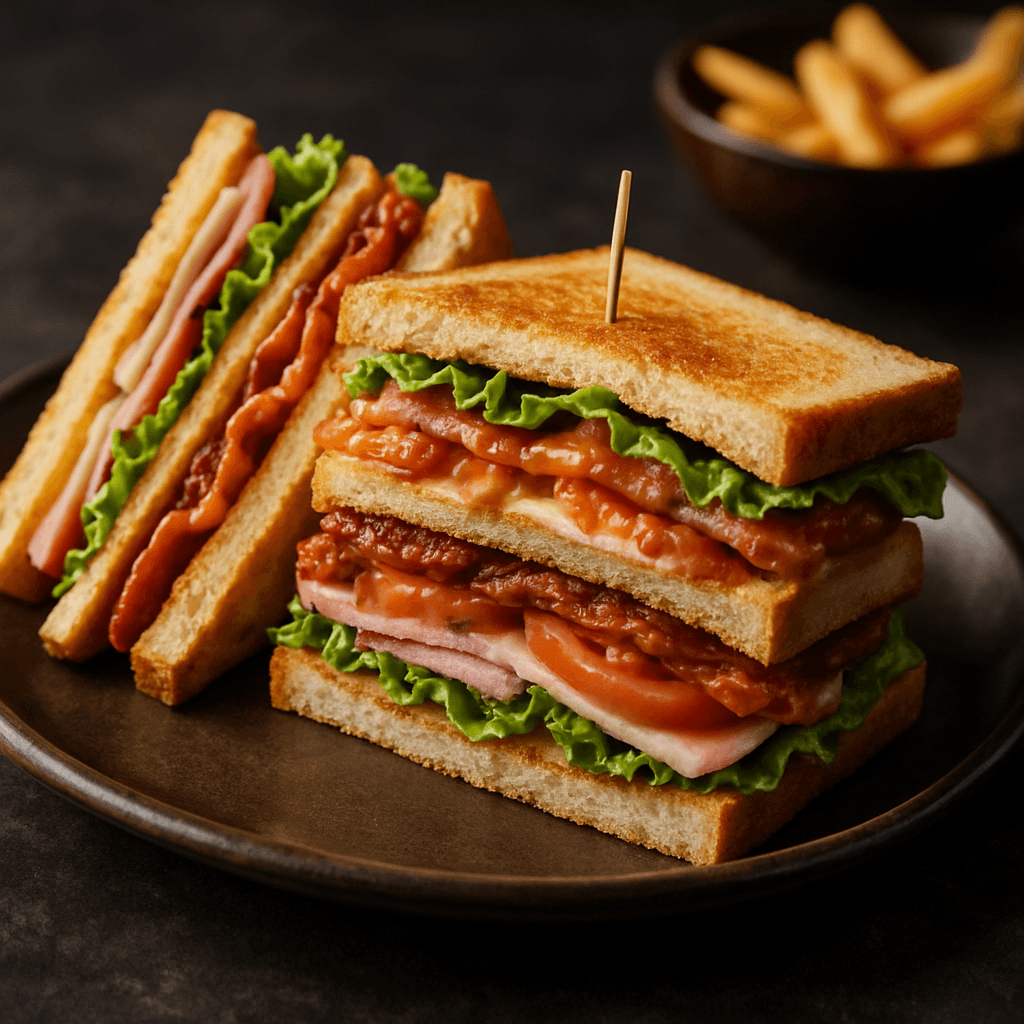 The sandwich originated in American clubs in the late 19th century and has since become a global favorite. It’s beloved for its combination of textures—from the crunch of toasted bread and bacon to the juiciness of fresh tomatoes.