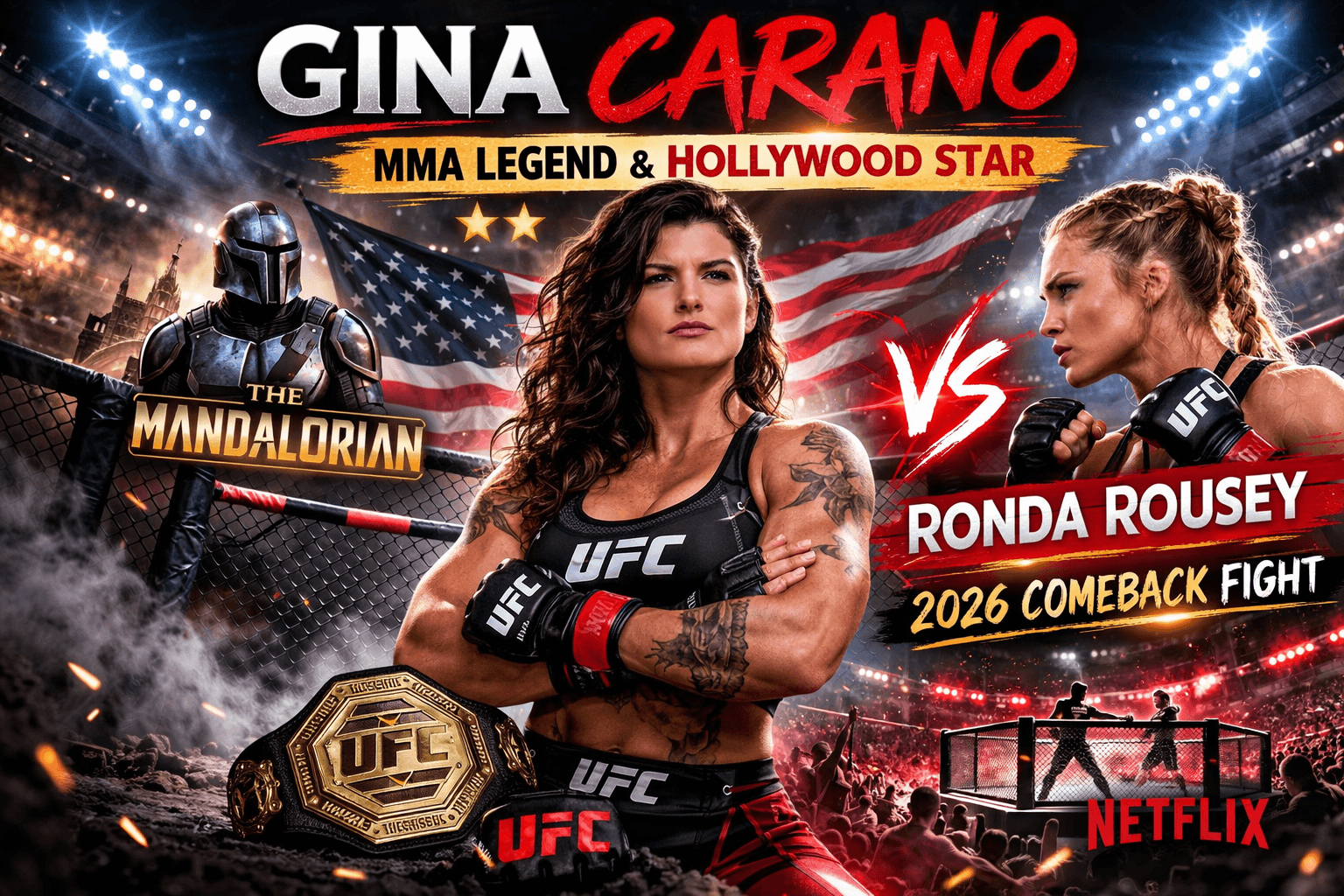 In the biggest development of 2026, Gina Carano is set to return from a 17‑year MMA hiatus to face legendary fighter Ronda Rousey in a high‑profile bout scheduled for May 16, 2026, at the Intuit Dome in Los Angeles. This fight — a five‑round featherweight contest — marks a historic moment for women’s combat sports and will be streamed live on Netflix, highlighting both fighters’ legacies.