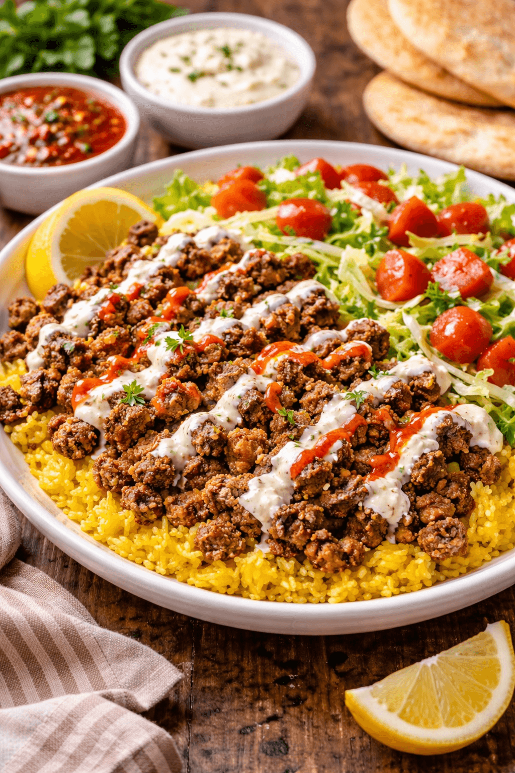 This NYC Lamb Over Rice recipe works because it balances spice, texture, and freshness. The lamb is boldly seasoned, the rice is aromatic and fluffy, and the creamy white sauce ties everything together.