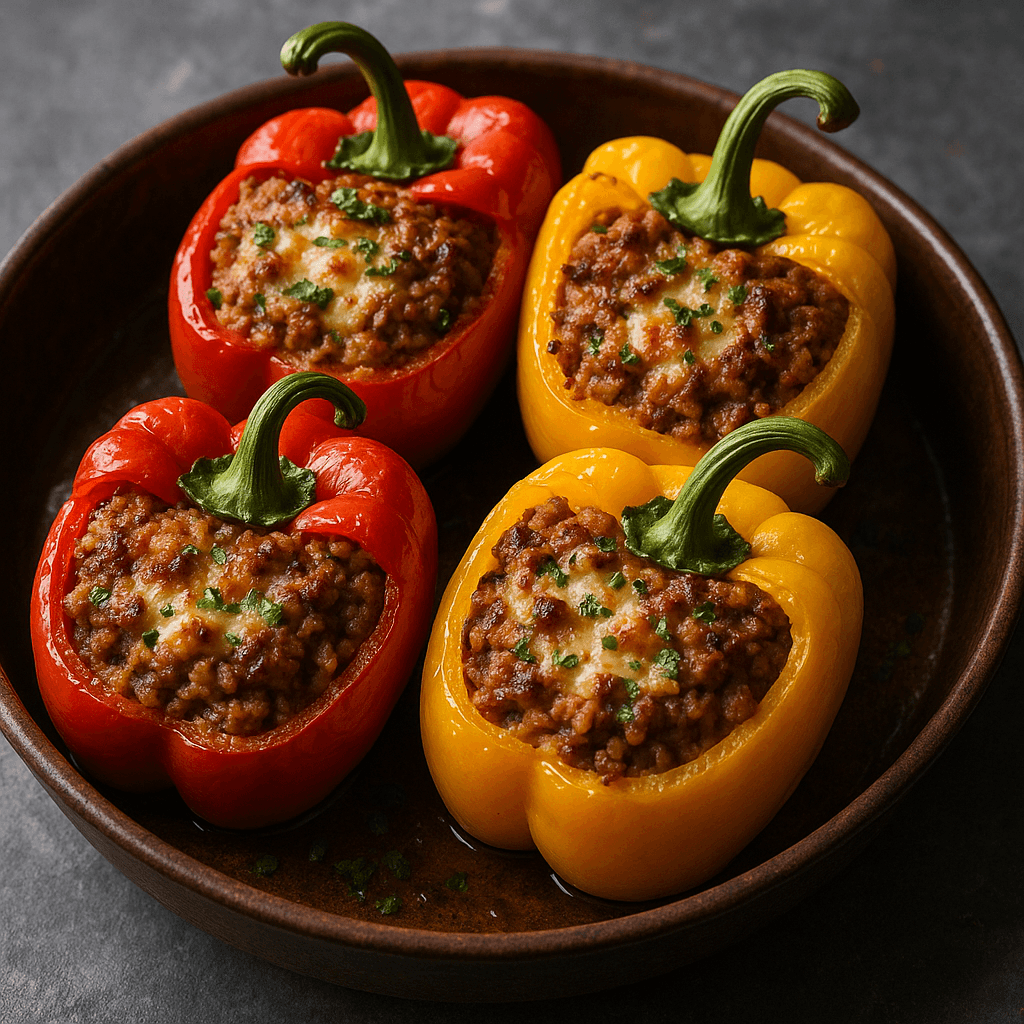 Bell peppers are rich in antioxidants and vitamins, particularly vitamin C and beta-carotene, which support immune health and skin vitality. Combined with lean protein and fiber from rice or beans, stuffed bell peppers make for a balanced meal that supports satiety and energy.